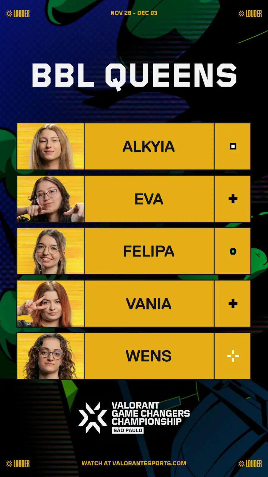 At Rosewood, the design team and I brought VALORANT Esports to life across global campaigns and social platforms. This gallery highlights work from events like VCT Champions, Game Changers, and Masters Tokyo, spanning everything from promotional graphics to templated systems and YouTube content.